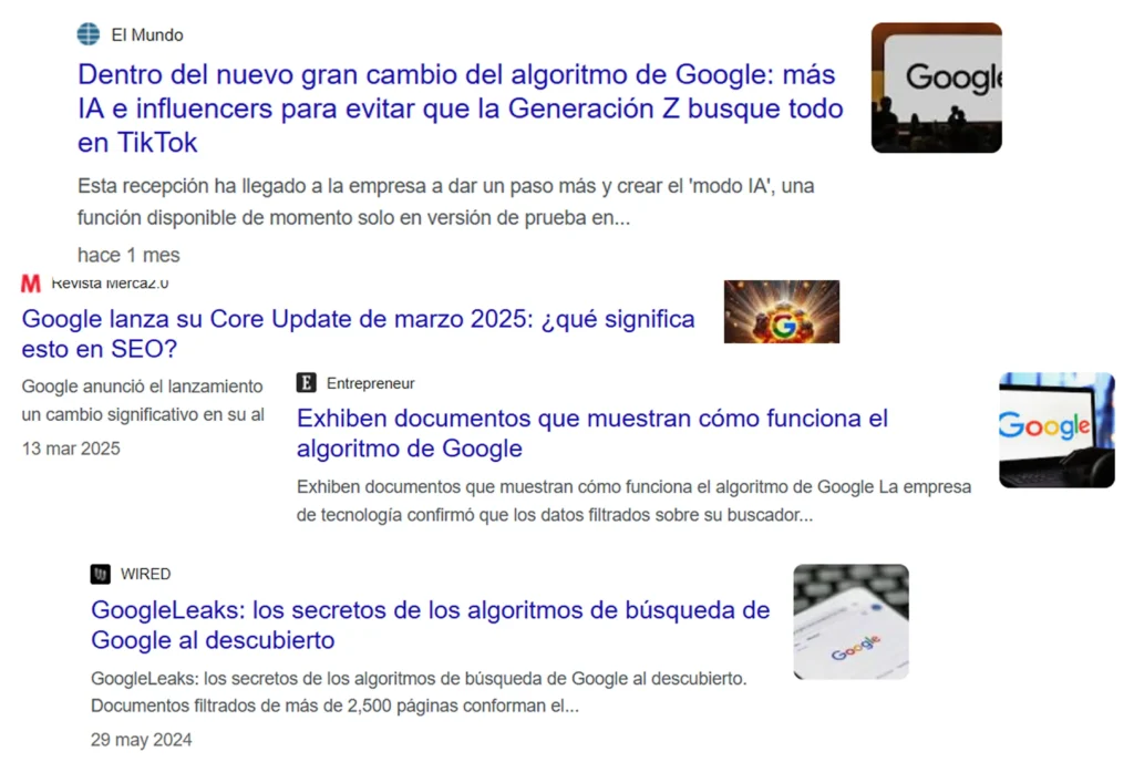 | Algoritmo | Conjunto de reglas matemáticas que determinan qué contenido se muestra a cada usuario en plataformas como Google o redes sociales. |
